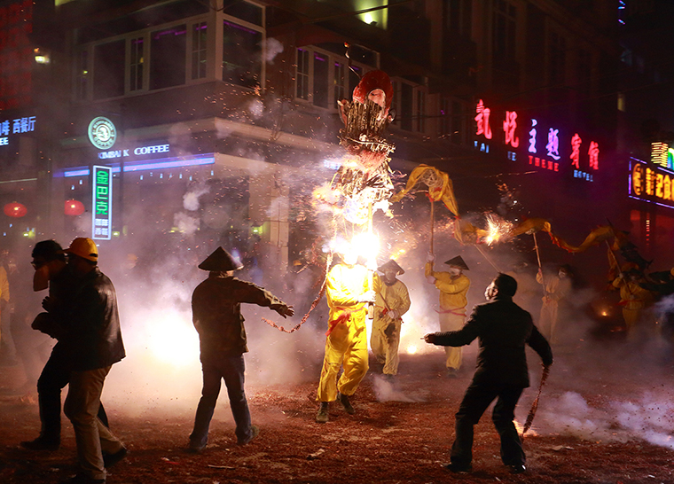 炮龙节是宾阳的民族之魂,宾阳人舞炮龙,每年正月十一晚上七点整开始,风雨不改;舞龙前供奉神灵,用鸡血喷龙眼开光;舞龙者头戴竹帽、赤裸上身、腰系红绸带,把炮龙舞到每家每户,鞭炮未放完不能离开;在任何情况下都不许丢弃炮龙,坚持到底;炮龙前面有龙灯队、锣鼓队、古乐队开路;各家各户备足鞭炮,烧炮增光;有街道居民求龙珠者,必出资预订;舞龙结束后把炮龙火化升天,祈求风调雨顺,国泰民安等等。传说钻龙肚能给自己和家人带来一年的吉祥如意;小孩钻龙肚会快长快大,长命百岁;情侣钻龙肚会百年好合,幸福美满;总之沾点龙气就吉祥……