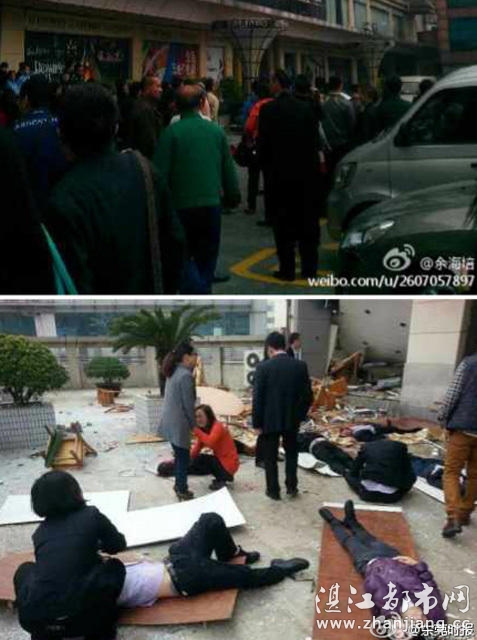 @东莞时报:具体情形不明,应该有很多中石化的员工就餐,从楼上可看到外面平台很多碎玻璃与碎椅子,至少两人躺着一动不动,现场惨烈。初步了解是中侨大厦某餐厅发生爆炸,伤者数量较多,目前没有准确统计。医院启动应急预案,急诊、烧伤、骨科、眼科、口腔科等各专业医生护士均参与抢救,医院领导、医务部、护理部主任等赶到急诊科指挥。市卫生局领导在现场指导急救工作。