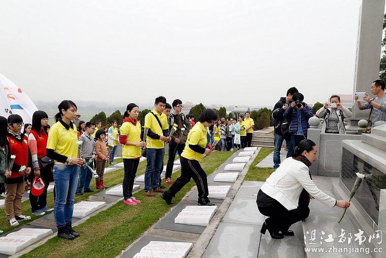 湛江都市网讯(图/文:燕燕于飞)“清风淡拂雨淋之,又是一年扫墓时。” 当天上午,120多名志愿者怀着崇敬的心情,集合于革命烈士纪念碑前,举行简短而庄重的敬献花圈仪式,并在纪念碑绕行一周,向烈士们致以崇高的敬意和深切的悼念。然后,志愿者们齐聚于烈士墓区,进行为英烈墓碑描摹活动。湛江市民政局副局长、双拥办主任李兵凤于现场向志愿者介绍此次活动的意义和烈士们的英雄事迹。志愿者代表梁佩英则在解放湛江烈士纪念碑和海军一六零舰烈士碑前,带领志愿者们,齐举右手,一起宣誓: “我是志愿者。我承诺:尽己所能,不计报酬,帮助他人,服务社会,践行志愿者精神,传播先进文化,为建设团结互助、平等互爱、共同前进的美好社会贡献力量。” 宣誓完毕,志愿者们逐一向纪念碑敬献鲜花。而后在湛江爱乐合唱团志愿者们的领唱之下,大家一起高唱《国际歌》。唱完《国际歌》,志愿者们各就各位,以红笔描摹英烈墓碑。活动结束前,志愿者们列队于烈士墓区前,向先烈们鞠躬致敬,高唱《中华人民共和国国歌》。 自2009年以来,湛江市民政局双拥办和情暖湛江志愿者服务队连续6年组织志愿者,开展向英烈学习,为英烈墓碑描摹活动。志愿者们通过缅怀为实现民族解放、人民幸福而英勇牺牲的革命先烈,感受烈士的英勇情怀和高尚品德,进而更有激情、更为昂扬、更加奋进地面对自己的工作和生活。