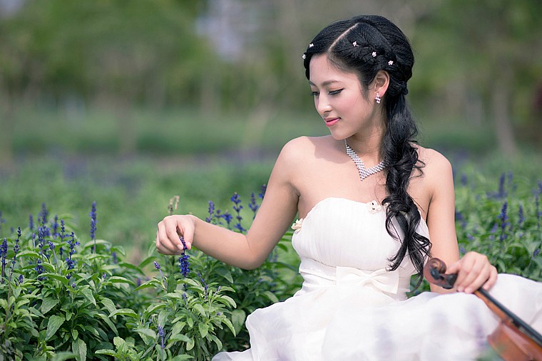 色彩 太浓,花的艳丽在模特白色服装成了反调,服装环境没选对