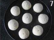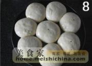 将发酵好的面团排气,分割成8份,滚圆,盖上保鲜膜松弛15分钟。