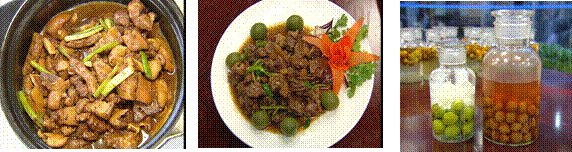 全猪宴 青梅宴 青梅酒 天露山景区拥有自己的养羊场,养猪场,梅子园,所以,特色烤全羊,全猪宴,青梅宴是天露山景区的招牌。最值得一提的就是天露山的青梅酒。新兴为驰名中国的凉果之乡,也是国内最大的高山青梅种植基地之一,每年3月到5月,青梅一个个饱满而翠绿,可以制作成梅果或最有食用价值的青梅酒。