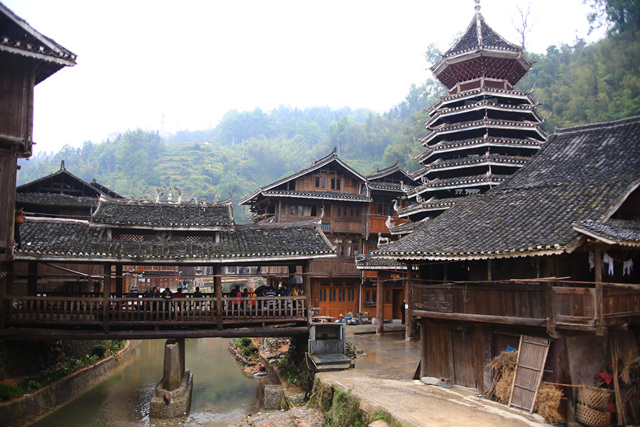 15:00 到达肇兴侗寨,分别沿着仁、义、礼、智、信欣赏五个不同风格的侗族鼓楼;
