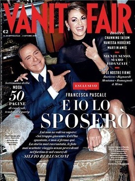 贝卢斯科尼与小他49岁女友拍摄杂志封面 虽然米兰老板贝卢斯科尼已经77岁,但他在感情方面依然宝刀未老。去年12月媒体曝光了他和新女友弗朗西斯卡-帕斯卡尔的恋情,虽然两人相差49岁,但年龄的差距并不影响这段感情不断升温。近日贝总和女友共同为《名利场》杂志拍摄封面并接受采访,帕斯卡尔甚至表示她愿意同贝总结婚。