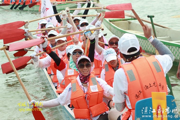 湛江都市网讯(图文:黄海之岛 )2014年6月2日端午节,第八届湛江海上龙舟邀请赛在赤坎金沙湾举行,由湛江君奥奥迪冠名的奥迪情暖湛江志愿者男女龙舟队参加比赛。一共有38支龙舟队参加角逐,奥迪情暖湛江志愿者龙舟队最终获得女子公开组第四名,男子公开组第五名的好成绩。