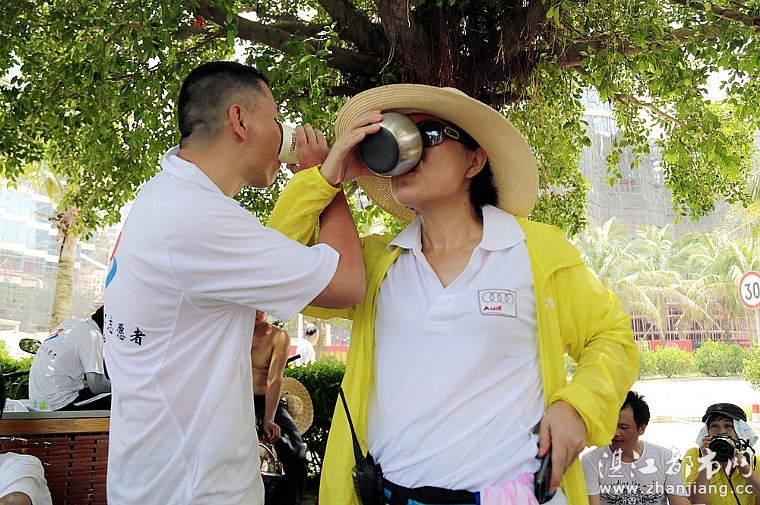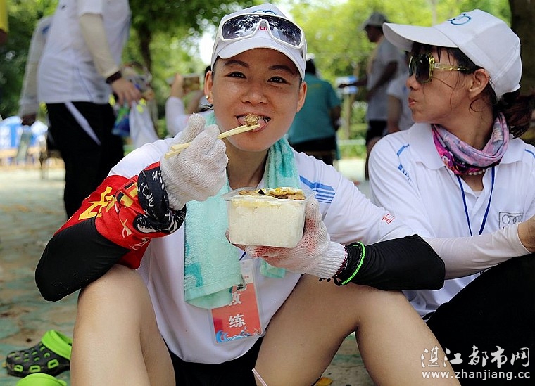 湛江都市网讯(图/文:燕燕于飞)人潮涌动渐散去,热闹场景渐褪去,鼓声铮鸣渐远去,呐喊声声渐远去,保利原点广场杯·2014第八届湛江海上龙舟邀请赛亦已渐过去一段时日。 “奥迪,加油!情暖,必胜!” 这句奥迪·情暖湛江志愿者龙舟队的口号仍言犹在耳。眼前飞扬着一张张鲜活面容,怎不教人久久难以忘怀?脑海划掠过一个个难忘画面,怎不叫人为之动容,令人赞叹不已? 上官自在,浅灰色长袖T恤打底,一身奥迪·情暖龙舟队服装束,脖子上围着魔术巾,胸前挂着哨子和防水手机套,右手手腕绑有运动护腕。当广东电视台珠江频道《珠江新闻眼》的记者采访小瑶和阿鲁之后,上官右手执着两根木槌,左手一挥一指,示意情暖姐妹们安静。在他的带动之下,大家面向镜头,对着麦克风齐声高呼:“奥迪,加油!情暖,必胜!”上官既是奥迪·情暖湛江志愿者龙舟女队的鼓手,也是整个奥迪·情暖湛江志愿者龙舟队的领队。他是整支队伍的凝聚力、向心力所在,更是这支队伍的“灵魂”人物。 小雪,黑色长袖T恤打底,一身奥迪·情暖龙舟队服装束,戴着一副墨镜,颈上搭着一条毛巾,右手臂队服袖上别着红色的队长袖章,右手腕上绑缚魔术巾,手上戴着一对白手套,胸前靠着一根木桨。当天上午,奥迪·情暖湛江志愿者龙舟女队第一次踏上小组预赛的征途。众位情暖姐妹来到龙舟前,等候指令。这时,小雪双手一伸,振臂一呼:“左右桨两条队伍,横队从右至左,第一桨开始,到最后一桨。” 情暖姐妹们即整齐列队,登龙舟,驶离岸边,开始了一整天的龙舟竞渡征程。小雪在此中的龙舟竞渡征程里,恰是一典型的“队长”形象。 华姐,头戴草帽,身着白色工作服,外披黄色皮肤风衣,腰围运动腰包,左腰间别有一工作证和一条擦汗的毛巾,右腰间别着一台对讲机。她于帐篷营地、沙滩和中午临时休息处来回地走动,为情暖人打点着所有的后勤保障事宜。这就是我们情暖精明的“管家”形象了。 无奇,额上冒着汗珠,脖子上随意地搭着一条毛巾,胸前挂着一个工作证和一块玉佩,脱去白色防晒外披,身上只着一件墨绿色背心,下配一条墨绿色五分裤,左腰间别着一副墨镜,脚踏一双人字拖。他左手夹筷子托着饭盒,右手捻吸管拿紧豆浆,再无顾形象地往地上一蹲,大口地吃着饭菜,饮着豆浆,就是一活脱脱的“民工”形象了。