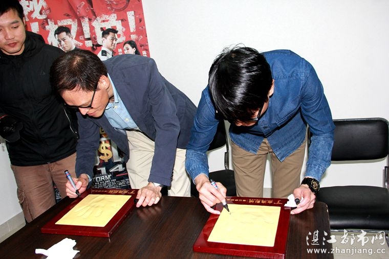 15点22分,导演林德禄以及明星主演林家栋在电影宣传海报上签名留念,两位还为金逸影城留下了手印作为纪念。