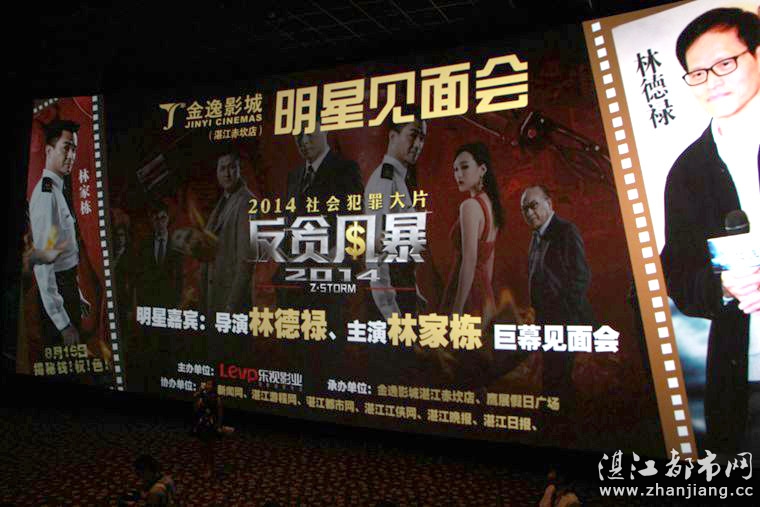 15点38分,在电影《反贪风暴》结束之后,万众期待的导演林德禄以及明星主演林家栋来到了金逸影城4号巨幕厅和现场的观众见面。导演林德禄以及明星主演林家栋在现场回答了观众的提问。有观众对林家栋说,希望尽快看到林家栋的下一部电影。最后导演林德禄以及明星主演林家栋和现场的观众一起合影留念。在观众的热情欢呼声中,林家栋湛江金逸影城影迷见面会圆满结束。