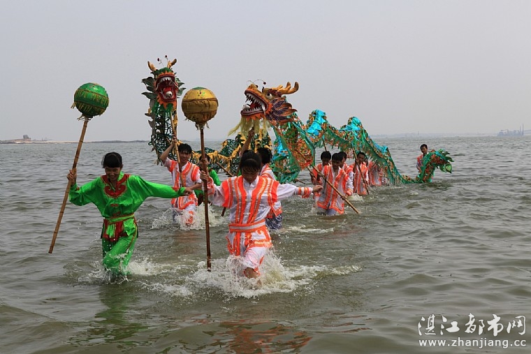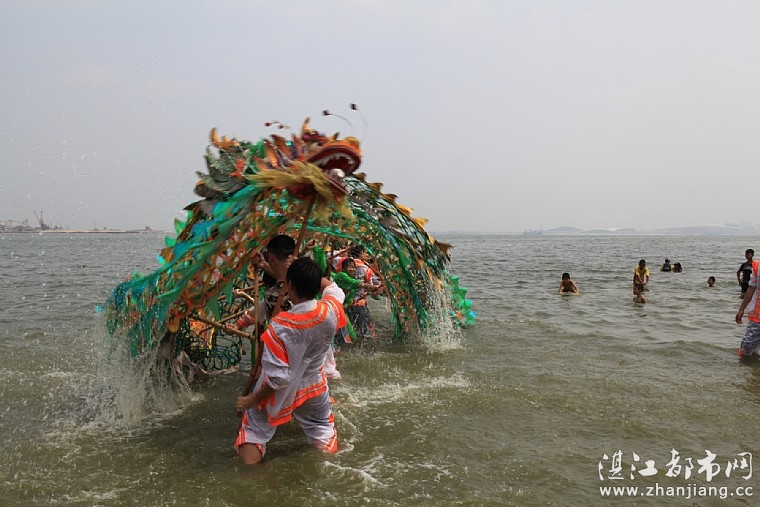 今天,在2014湛江海洋周旅游民间艺术会演结束后,应摄影爱好者要求,调顺村的草龙队为观众表演了一场别开生面的水上舞草龙。