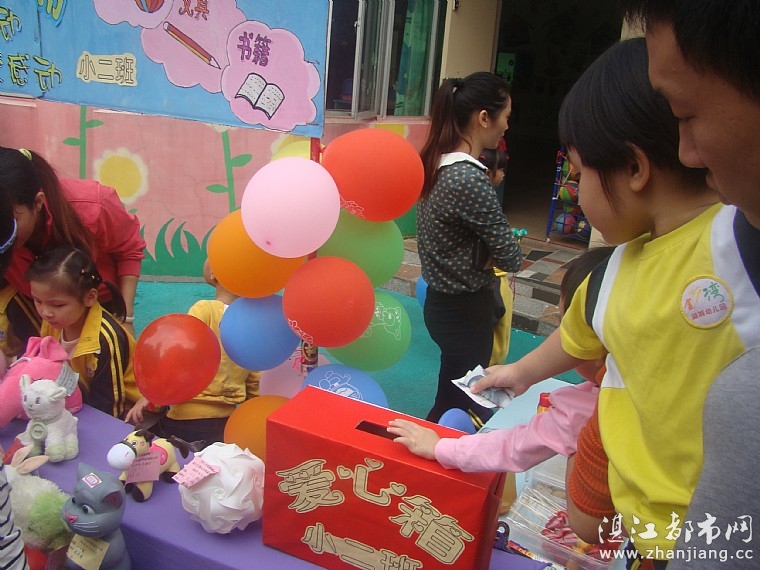 金沙湾幼儿园“爱心义卖暖真情”活动总结 ——陈小群 2014年11月29日上午,迎着温暖的阳光和凉爽的清风,我们来到金沙湾幼儿园,作为志愿者,协助小朋友们开展首届金沙湾幼儿园“爱心义卖暖真情”活动。 当我们到达幼儿园时,作为小店主的小朋友在老师的引领下,在幼儿园的操场上摆好了各个班级的摊位,每个摊位都有自己的店名和爱心钱箱,各种叫卖用的举牌道具一应俱全,摊位上的商品也是琳琅满目,这些商品是每个小朋友捐赠出来的书籍、学习用品、玩具、手工艺品、零食、小盆栽等,还有老师们亲手做的包点蛋糕。活动还没正式开始,已经吸引了很多家长和孩子的围观,摊位上的小店主们也是兴致勃勃,期待着店铺开张。这时,门口负责接待的老师和志愿者正热情地接待每一位到来的孩子和家长。 在两位可爱的小主持介绍本次活动时,获得在场家长孩子们热烈的掌声。当两位小主持大声宣布义卖活动开始后,孩子们拿着家长给的零钱去购买喜欢的小商品,有点家长也在为自己的孩子选购礼物。原本还算安静的现场一下子沸腾起来, 热闹非凡,个个醒目的招牌“拔地而起”,一声声叫卖飞入耳畔,“走过路过不要错过啊,便宜卖了,便宜卖了!”小朋友们摇身一变,一下子成了经验的售货员和推销员,“过了这村,没了这店!”操场上的吆喝声不绝于耳。小店主们活力的叫卖声、家长孩子选购的讨论声、淘到喜欢东西的欢笑声络绎不绝,现场气氛十分热烈,而且,秩序也非常良好,尽管有点小朋友没有及时抢购到心爱的玩具而有点遗憾,但是大家都很礼让。 这样别开生面的义卖活动,小朋友们都觉得很有趣,能够体会怎么当小老板卖东西,也能自己做主买东西;家政们也非常肯定这次活动,彼此见到认识的老师和家长,都面带笑容赞扬,“这次活动搞得真好,有意思,又有意义”、“几块钱就能买到孩子喜欢的东西,太划算了”、“把家里闲置的物品拿出来爱心义卖,又环保又可以让孩子有一次难得的体验”······ 爱心义卖活动开展得十分顺利,9点开始,不到11点,商品就售罄了。经过幼儿园老师和志愿者的交流讨论,这次义卖所得的款项,将会作为情暖湛江志愿者协会爱心项目的资金,使这次爱心义卖活动的意义更好的传递,帮助更多有需要的人。此外,对这次活动,老师和志愿者也一起分享了经验,如商品的筹集、联动家长一起参与其中、现场设置留言墙等,为完善丰富下一次的爱心义卖活动出谋献策。 我们相信,这次义卖活动只是开始,而爱心传递是不会结束的,分分角角虽少,蕴含的是一份爱心,一份奉献;零零碎碎虽小,凝聚成的却是巨大的力量。 来源:情暖湛江志愿者协会
