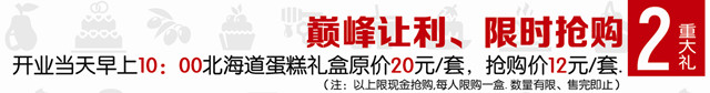 开业当天早上10:00北海道蛋糕礼盒原价20元/套,抢购价12元/套