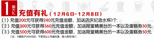 (3)凭当天充值小票现金预定栗子蛋糕可享受7折(12月6日-12月8日) |