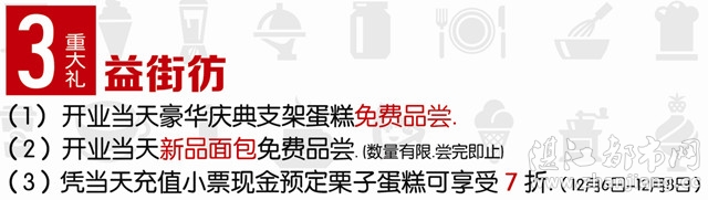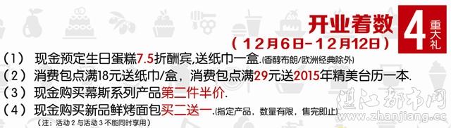(2)开业当天新品面包免费品尝(数量有限.尝完即止)