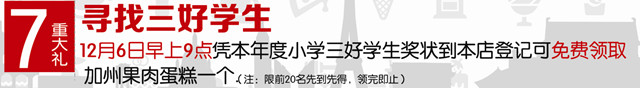 12月6日早上9点凭本年度小学三好学生奖状到本店登记可免费领取加州果肉蛋糕一个