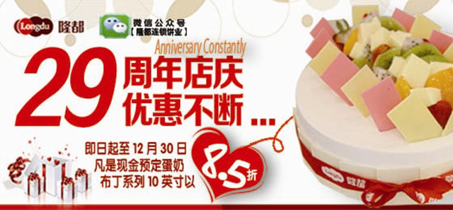 29周年店庆优惠不断,订蛋糕,选隆都!