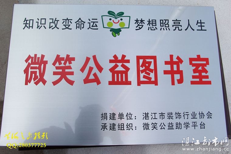 湛江都市网讯(图/文 黄海之岛)“知识改变命运,梦想照亮人生”2014年12月28日,由微笑公益助学平台发起,湛江市装饰行业协会冠名赞助的第八间“微笑公益图书室”在廉江市石颈镇镇山埇希望小学建成。