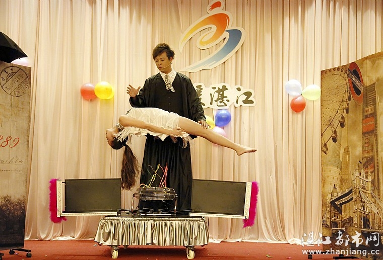 湛江都市网讯(图/文:燕燕于飞): 当晚,新年晚会由湛江广播电视台、湛江交通音乐广播的著名主持人郭智华、阳光、小黑与张怡主持,以喜庆吉祥的醒狮点睛仪式热闹开场。随后,湛江市情暖湛江志愿者协会会长梁佩英致辞。梁佩英回顾了情暖湛江志愿者走过硕果累累的志愿服务十一年,爱心足迹遍粤西的公益历程,总结了2014年开展的各项志愿服务,展望了2015年协会开展的志愿服务项目和发展方向,并向所有关心和支持情暖湛江的各级领导、社会各界爱心人士、爱心企业以及广大志愿者致以衷心的感谢与新年的祝福。 新年晚会的节目于2014年度爱心企业、优秀志愿者和爱心支持媒体颁奖后继续出彩呈演。舞台上,情暖人自编自演的《情暖公益经典项目展示》、载歌载舞的《小苹果》、情景再现融合健身运动的《动感单车》和歌舞混搭中华武术的《中国范》,倾力的演出,感动的瞬间,赢得掌声连连。湛江梦态奇电影工作室的小品、春天艺术团的肚皮舞、湛江Ks魔术会社的大型情景魔术表演与湛江爱乐合唱团的小组唱也为新年晚会加添欢乐和精彩。晚会进行期间,还穿插幸运抽奖环节,令台上台下惊喜连连。