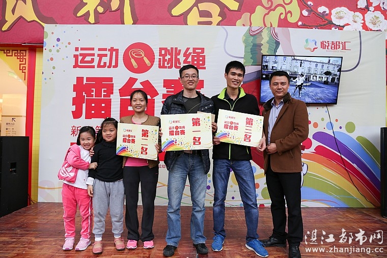 湛江都市网讯 [图文:子珊妈] 2015年3月5日下午,“悦都汇杯”首届跳绳运动会决赛在悦都汇购物中心门前举行。经过一番激烈的角逐,成功产生冠亚季军三名,分别是:冠军吴超(219次/分钟)、亚军庞燕梅(218次/分钟)和季军莫李华(207次/分钟)。