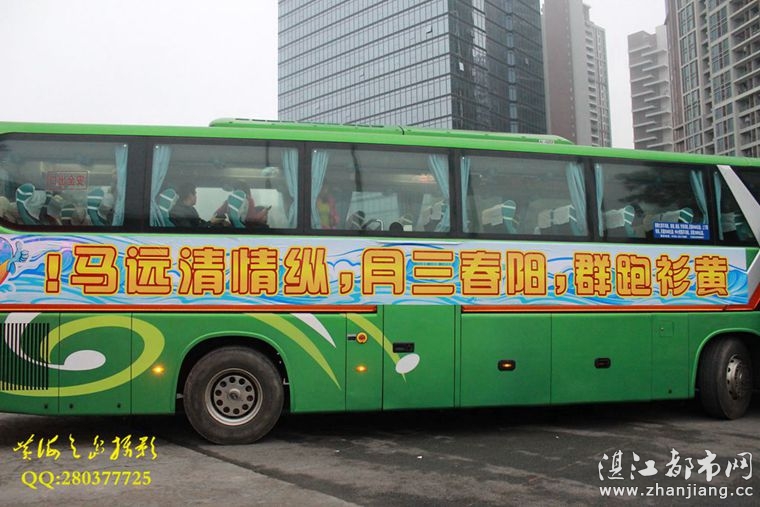 我们湛江跑步群出征清远马拉松之际,以湛江健儿的身份,也要为我们湛江的即将举办的第15届省运会进行一下声援,也为积极宣扬全民健身,让更多人加入和关注运动健身,因此在出征清远的大巴车的两边分别贴上:”黄衫跑群,阳春三月,纵情清远马! 蓝色湛江,金秋八月,喜迎省运会! “这条标语是群友从湛江跑步群28条标语中选出来的,这条标语是大狗的杰作。