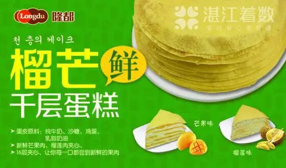 隆都缤纷千层蛋糕系列--榴莲、芒果、两款口味总有你最爱|隆都蛋糕宅急送。