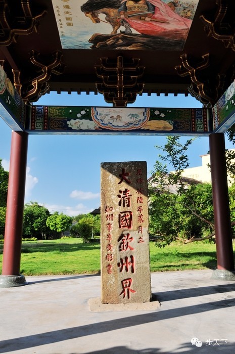 竹山位于中越界河北仑河的出海口,是中国大陆沿线的起点,在我国版图上具有特殊意义。一号界碑竖立在竹山村边的一棵大榕树旁,碑石是用坚硬的海石凿成,高六尺余,宽二尺余,厚尺余,上面正楷阴刻的字为“大清国钦州界”。当时竹山属钦州所辖,故名“钦州界”。据史料记载,公元1886年11月至1888年5月间,清政府代表邓承修与法使(越南当时为法国殖民军占领)会勘疆界。开始,法使仗势欺人,要将白龙半岛一半划出中国,在白龙半岛上竖埋第一号界碑。邓承修正气凛然,据理力争,终将起界定在竹山,维护了国家主权。 这块因长年日晒雨淋而益显沧桑的巨石,就以这样崛强的方式屹立着,界碑上庄严雄浑的“大清国钦州界”几个大楷透着一股不可侵犯的凛然正气,向每位到来的人们诉说着100多年来的每一段历史。