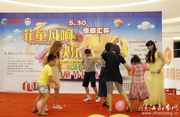 湛江都市网讯(图/文:燕燕于飞):2015年5月30日下午,“六·一”国际儿童节即将来临之际,由湛江悦都汇购物中心主办,广州米菲旗下的BALADOG国际活动品牌协办的菲童凡响,快乐六一儿童节钜惠活动,在商场一楼中庭欢乐上演。舞台上,小朋友们轮番献上各自的才艺表演,和家长参与亲子游戏、抽奖环节,于欢快的气氛中度过快乐的亲子时光。