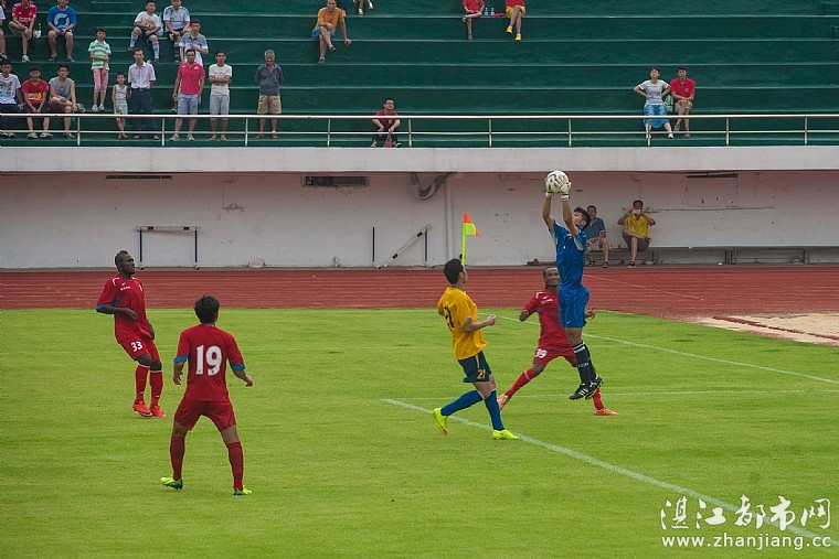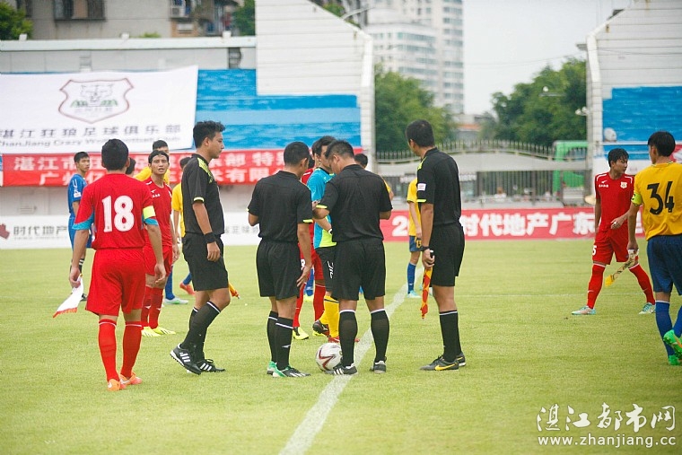 湛江都市网讯(图/文:Double_east)2015年7月19日下午16:00时,广东省足协联赛第九轮,湛江狂狼俱乐部VS中山大信俱乐部的比赛在霞山运动场正式打响。身穿红色球衣的湛江狂狼队会对阵身穿黄色球衣的中山大信队。湛江狂狼队以5:0的大比分大胜中山大信队。目前已以积24分的分数位居联赛榜首。以下是赛事具体报道。