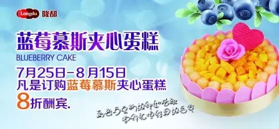 (1)凡是订购蓝莓慕斯夹心蛋糕8折酬宾!(湛江隆都所有门店)
