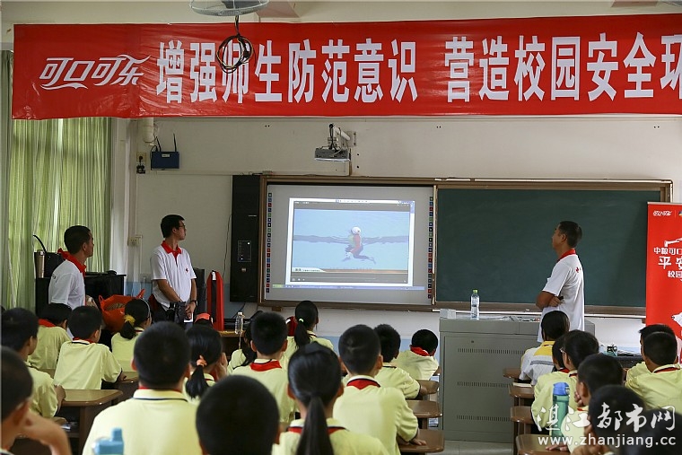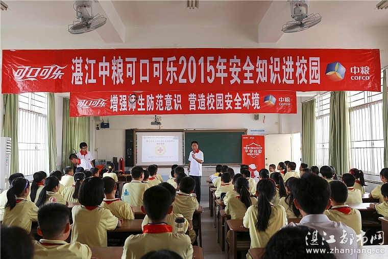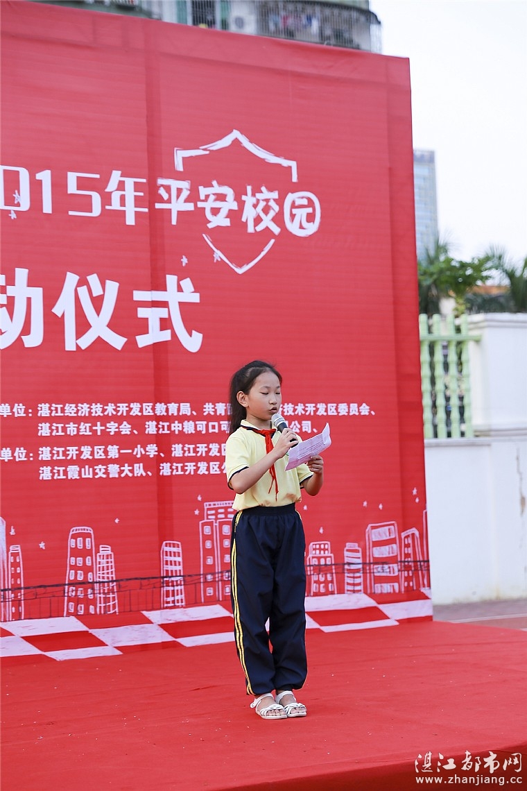 【湛江都市网讯】(图文:子珊妈)10月21日,由湛江中粮可口可乐饮料有限公司、开发区教育局、开发区团委、湛江市红十字会联合主办的2015年“平安校园”活动在开发区一小启动。