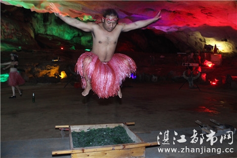地下瀑布 鹿峰山是典型的岩溶地区,长期的河道变迁、袭夺、暗河塌陷、河流下切,致使河床级级跌落,形成了曲折跌宕神秘多姿的地下河奇观。地下河水量清洌充足,沿着层层跌落的河床冲击而下,在神秘的地心世界里形成了最美的七彩大型瀑布。 地下表演 这里有出水芙蓉般的苗家姑娘,倾情演绎苗族特有而神秘的舞蹈,热情欢迎八方来客。还有来自云南民间的特技高手,倾情表演倾情表演光脚踩玻璃、光脚负重踩钢刀、刀尖起舞等精彩特技。尖叫的场面,刺激的感观,让您叹为观止!