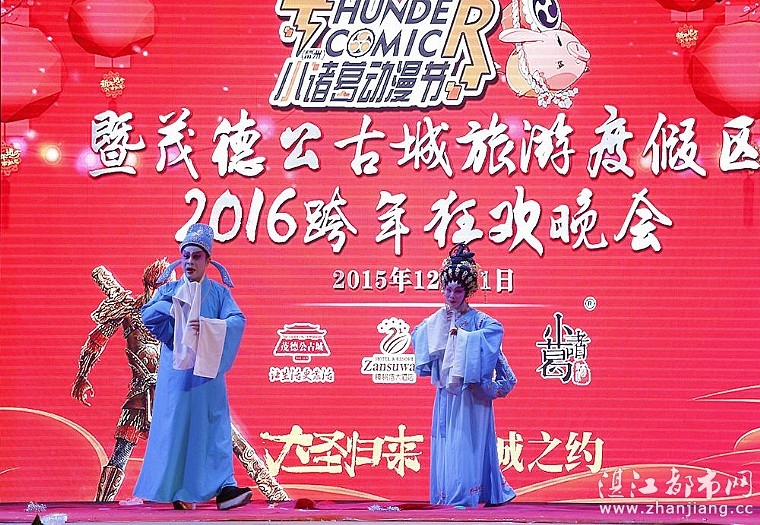 湛江都市网讯(图/文:燕燕于飞):2015年12月31日,雷州市茂德公古城举行以“大圣归来,倾城之约”为主题的小诸葛动漫节暨茂德公古城旅游度假区2016跨年狂欢晚会,吸引了众多市民和嘉宾前来观看,共同度过一个热闹美好的跨年夜。 当天晚上,跨年晚会分为“瑰宝之美”、“动漫之夜”和“倾城之约”三大部分。精彩节目在幼儿园小朋友的服装走秀中热闹开场。随后,婀娜多姿的肚皮舞、脍炙人口的雷剧选段、性感吸睛的模特比基尼秀、穿越异次元的动漫Cosplay走秀,载歌载舞,独具本土特色的节目一直表演至零时。期间,现场观众热情参与抽奖、大派红包、动漫Cosplay模仿秀和情侣之间告白等互动环节,赢得奖品与红包,收获喜悦,收获喜庆。 接近零时,主持人与观众一起进行新年倒数。全场观众打开手机的电筒功能,一边照明,一边高呼“十、九、八……三、二、一。新年快乐!”顿时,茂德公戏楼台上台下,倒数声、欢呼声、祝福声响彻整个古城。主持人和观众一同跨年狂欢,共同迎来新的一年。 今年,首届小诸葛动漫节将于2016年1月1日上午在猫的工古城启动。茂德公古城旅游度假区2016跨年狂欢晚会亦在此举行大型文艺演出,将雷州的本土文化和风俗内涵融入各个节目环节中,让现场所有观众和嘉宾于古色古韵的古城内送走收获满满的2015,迎接充满希望的2016。
