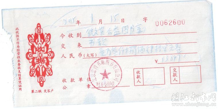 无收据(从湛江霞山拉书架、图书、桌椅到吴家小学)