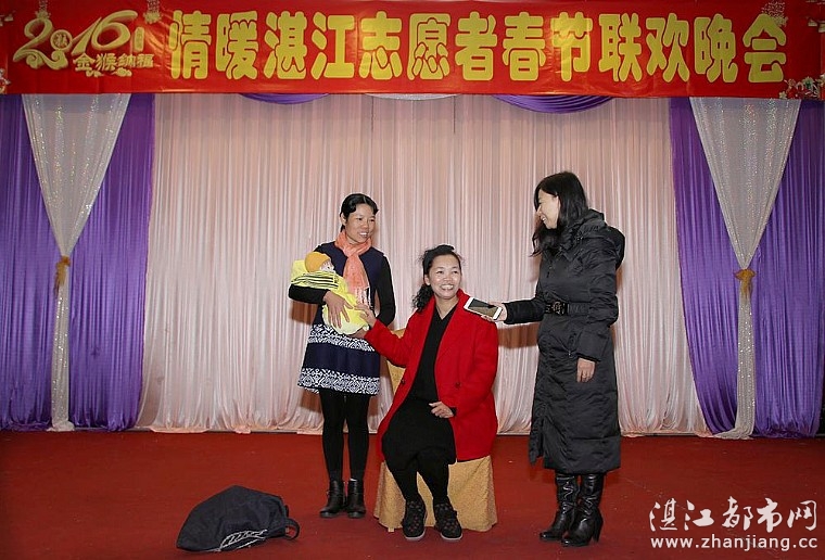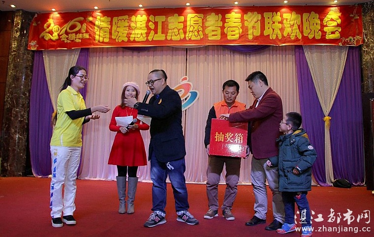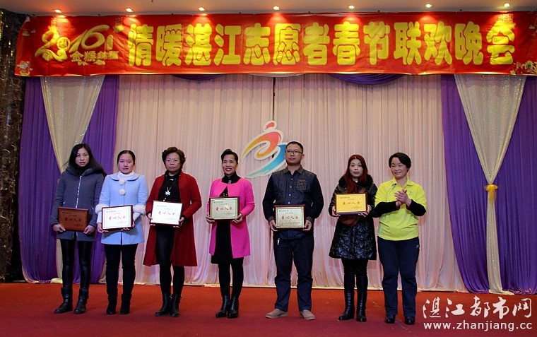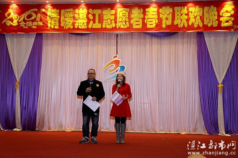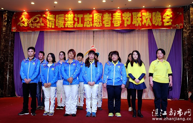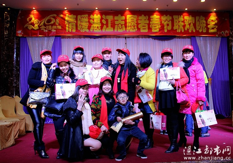 2016123日,湛江市情暖湛江志愿者协会以“弘扬真善美,情暖湛江人”为主题,于霞山区金辉煌酒店六楼1号会议室举行2016情暖湛江志愿者春节联欢晚会。湛江市志愿服务联合会、共青团湛江市委员会、湛江市民政局与湛江市妇女联合会等领导嘉宾、情暖湛江志愿者、社会各界爱心人士,以及爱心商家300多人欢聚一堂,共同见证和分享情暖人的志愿热情与爱心力量。
