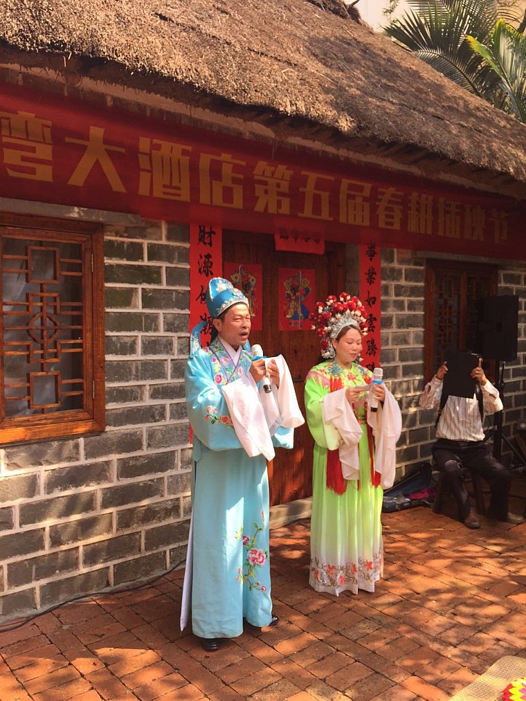 湛江都市网讯(图/文:燕燕于飞):一年之计在于春,又到春耕农忙时。2016年3月27日,雷州樟树湾大酒店举办第五届春耕插秧节。原生态的春耕农作,吸引了湛茂两地众多游客和领导嘉宾前来观看拍照,体验一把田园农耕之乐。 当天上午,酒店中庭的一亩三分地一派春耕的热闹景象。随着神农氏祭拜仪式的启动,樟树湾大酒店迎来了第五届春耕插秧节。本次春耕插秧节的观光体验内容丰富,涵盖雷剧唱段表演、比基尼美少女走秀、酒店宾客与比基尼美少女的游戏互动和美国洛杉矶青少年奥林匹克交响乐团的演奏助等活动内容。亲子同欢乐,亲身体验传统的农耕劳作,掀起了春耕插秧节的高潮。大人小孩一起脱鞋脱袜,卷起裤管,踩进湿黏柔软的水田,弯着腰,将秧苗插入泥土,体验真实的劳作。其中,年纪最小的“小农民”,2岁牛牛插秧特别引人注目。他在奶奶的牵扶之下,站入水田中。妈妈则在一旁为他拍照留念。接着,他不需搀扶,拿秧苗,蹲下,种进泥里,认真投入的模样萌化众人心。 “一亩田种些五谷杂粮饱肚子,三分地栽点花花草草怡心神。”雷州樟树湾大酒店为您开启田园风情之旅!