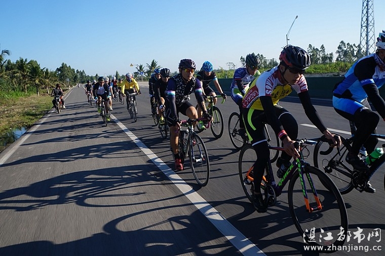 27日, 朝阳重临雷州半岛,2000多名骑友出发!浩浩荡荡,队伍延绵数公里...............这是领先的公路车队.来源:半岛家园