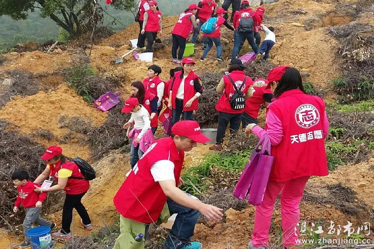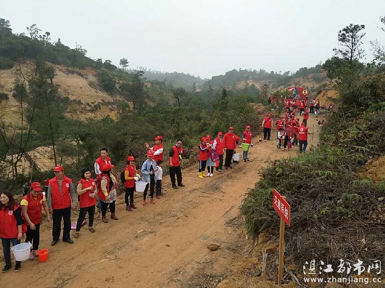在众多的人群中,有一个团队特别引人注目,首先这个团队的人数接近了100人,而且以整齐的红色着装以及井井有条的步伐向植树区前进着,这个团队就是湛江天德志愿者协会。