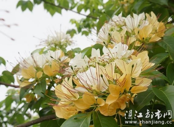 在多愁善感的四月天里,在南亚热带植物园职工宿舍区,欣赏鱼木风情万种的脱俗姿态正当时。一树淡黄素白相间的鱼木花,争先恐后地缀满枝头;细细长长的紫红色花丝衬托花间,飘逸优雅,温顺地垂下柔软的肢体,散发着淡淡的隐隐约约的花香。鱼木树上犹如不计其数的黄白蝴蝶在摆弄衣裙,翩翩起舞!你会不由自主地扪心自问:“这需要迸发多少能量,需要如何严谨约定,才有这片惊艳不已的娇娆?”