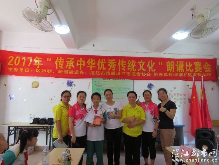 6月4日上午,湛江市情暖湛江志愿者协会携手湛江市妇联、霞山区妇联、新园街道办、录溪社区、录溪社区家长学校、湛江市第十四小学、湛江市第二十七中学共同举办“在一起、更幸福”2017年“传承中华优秀传统文化”朗诵比赛会活动。
