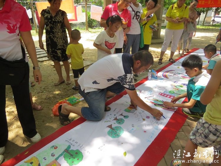 6月4日上午10点,湛江市情暖湛江志愿者协会携手霞山区妇联、新园街道办、录溪社区、录溪社区家长学校、湛江市第十四小学、湛江市第二十七中学、湛江市无偿献血志愿者服务队、湛江北纬二十二贸易有限公司、湛江霞山雨晨服装加工厂共同举办“放飞童心、激扬梦想”画出我心中的绿色家园百米长卷亲子绘画活动。来自社区等60个亲子家庭,在百米白布上用画笔、颜料勾画出他们心目中绿色家园的景象。小朋友们在绘画的过程中学习到更多的环保知识,并用画笔来建造心目中的绿色家园!这场快乐亲子绘画派对不仅为小朋友们提供了一个尽享亲情和乐趣的平台,也为小朋友们搭建了一个发挥他们自身才华的机会。