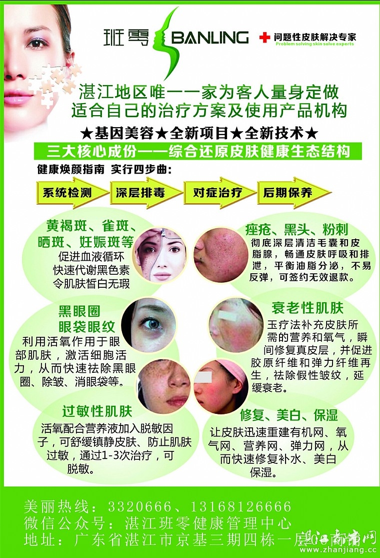 湛江班零皮肤治疗中心 地址:湛江市开发区西粤京基城三期四栋06商铺 美丽热线:0759-3302666 咨询热线:谢老师 13168126666