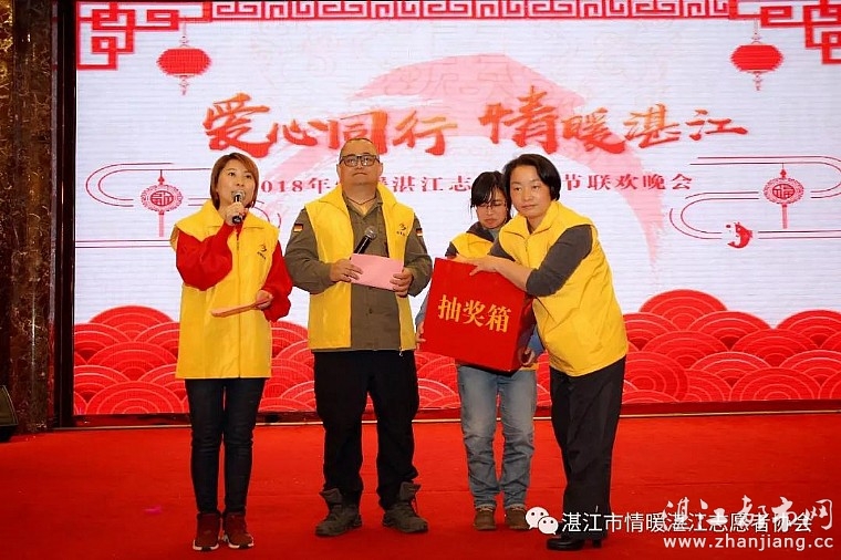 爱心同行 情暖湛江-2018年情暖湛江志愿者春节联欢晚会(图/文:燕燕于飞): 2018年2月6日,湛江市情暖湛江志愿者协会以“爱心同行,情暖湛江”为主题,于金辉煌酒店1号会议室举行2018年情暖湛江志愿者春节联欢晚会。湛江市志愿服务联合会、共青团湛江市委员会与湛江市妇女联合会等领导嘉宾、情暖湛江志愿者、社会各界爱心人士,以及爱心商家200多人欢聚一堂,共同欢度志愿者自己的年度盛会。