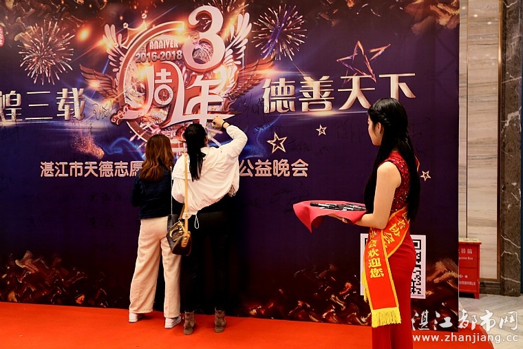 陈思)1月12日晚上,湛江市天德志愿者协会在霞山举行三周年庆典公益晚会暨表彰大会。会员及邀请的嘉宾共300多人一起共享此次盛宴。这次公益晚会以中华经典传承为依托,宏扬中华的传统美德,通过一个个饱含德善美的节目,让所有人感受到人间大爱,感恩身边的一切,感恩祖国的强大,感恩在中国共产导的领导下人民能幸福快乐的生活,真正实现中国梦,真正做到“富强、民主、文明、和谐、自由、平等、公正、法治、爱国、敬业、诚信、友善”。
