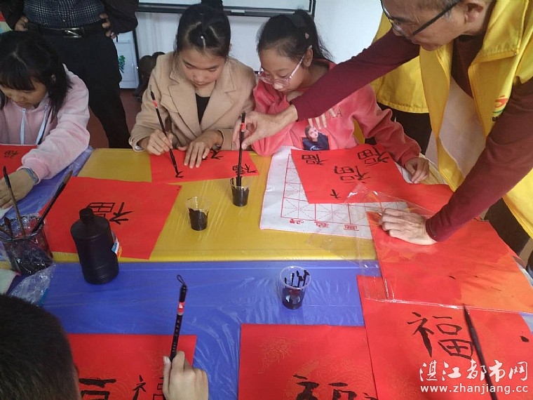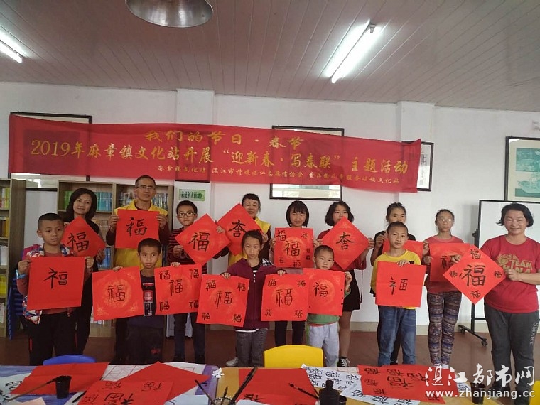 我们的节日·春节 2019年麻章镇文化站壹乐园儿童服务站 开展“迎新春,送福字”主题活动 (图/文:小远/黄葵玉/黄粤秀) “爆竹声声辞旧岁,红梅点点迎新春”。过春节是中华民族历来的传统习俗,家家户户都要贴春联,以此方式迎接新春。为向社区居民传递最美好的祝福和关爱,在新春佳节即将来临之际,为欢庆新年,传承民族文化,培养丰富儿童们的生活乐趣及精神文化,增添幸福指数,壹乐园儿童服务站(麻章镇文化站)、湛江市情暖湛江志愿者协会携手麻章镇文化站于2019年1月30日下午在湛江市麻章区麻章镇文化站开展我们的节日·春节2019年“迎新春,送福字”主题活动,约20余人参与了活动。