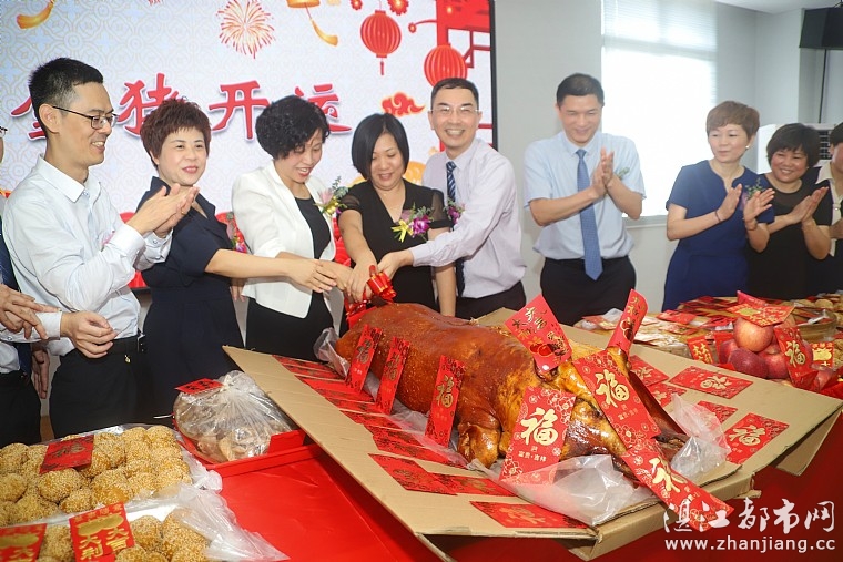 随后,中国人寿保险股份有限公司湛江分公司领导、赤坎区支公司领导、嘉宾与全体主管回到多功能会议中心切烧猪、切发糕,共同庆贺赤坎营销部办公职场乔迁。