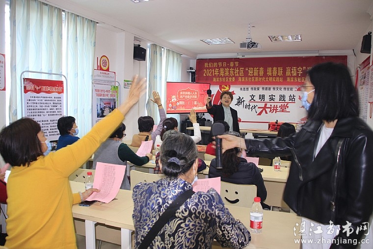 (图文:陈洁)为了迎接2021年春节的到来,丰富社区居民的新年文化生活,弘扬春联这一中国特色的传统文化,增强大家对中华的热爱之情,也为使社区居民过一个欢乐祥和的春节,感受到党和政府的关怀。23日下午,湛江开发区海滨东社区举办“我们的节日·春节——迎新春 填春联 赢福字”送祝福活动。
