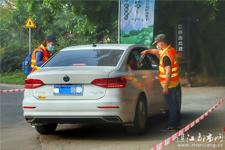 符美娣带领13名情暖湛江志愿者的核验组,协同步天下、森林公园工作人员,在公园南门为进园的自驾车辆、市民朋友提供测量体温、引导疏流和核验健康码(绿码)等志愿服务。核验组分工协作、热情服务、清晰指引,做到人畅其行、车畅其流。