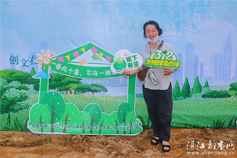 湛江市情暖湛江志愿者协会会长梁佩英于当天中午乘坐飞机,飞往外地学习。但梁会长重视本届植树节的志愿服务活动。她一早来到公园南门和主会场现场,以行动支持活动的开展,给情暖湛江志愿者加油鼓劲。