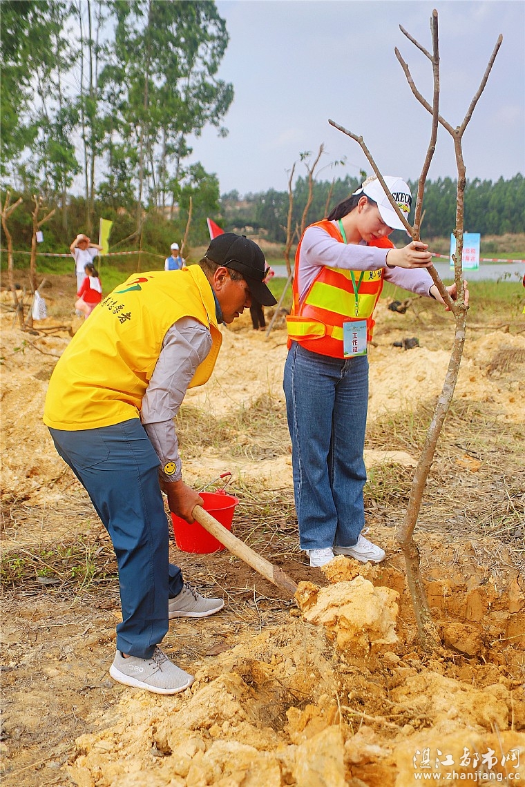 薛葱娟、赵润生带领6名情暖湛江志愿者,分别于主会场植树C区、植树D区为植树的市民朋友提供查验入场券、领取树苗、派发植树工具、协助种树、取水指引和现场安保等志愿服务。当天有很多亲子家庭参与植树,且主会场植树面积宽,附近有水域。所以,情暖湛江志愿者多花心思关注亲子家庭,留意孩子们是否被蚊虫叮咬,提醒他们不要随意乱跑,不要靠近水域。情暖湛江志愿者还热心地为市民朋友搬运树苗,教他们如何挥锹铲土,提供取水指引,并提醒他们悬挂树牌。
