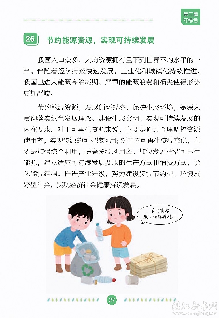 当前,湛江市情暖湛江志愿者协会正在执行壹基金&舒肤佳“健康传中国-洗手计划”项目。“情暖湛江”不仅仅关注乡村儿童卫生健康习惯的养成与卫生健康知识的提升,而且还呼吁:全民卫生健康需要每个人的共同努力。我们每个人都应该主动学习卫生健康知识,提高卫生健康素养,形成健康的生活方式。情暖湛江宣传部现转载《文明健康 绿色环保生活方式手册》的《第三篇 守绿色》。望全体情暖湛江志愿者和广大人民群众主动学习、认真阅读,一起践行文明健康、绿色环保的生活方式!