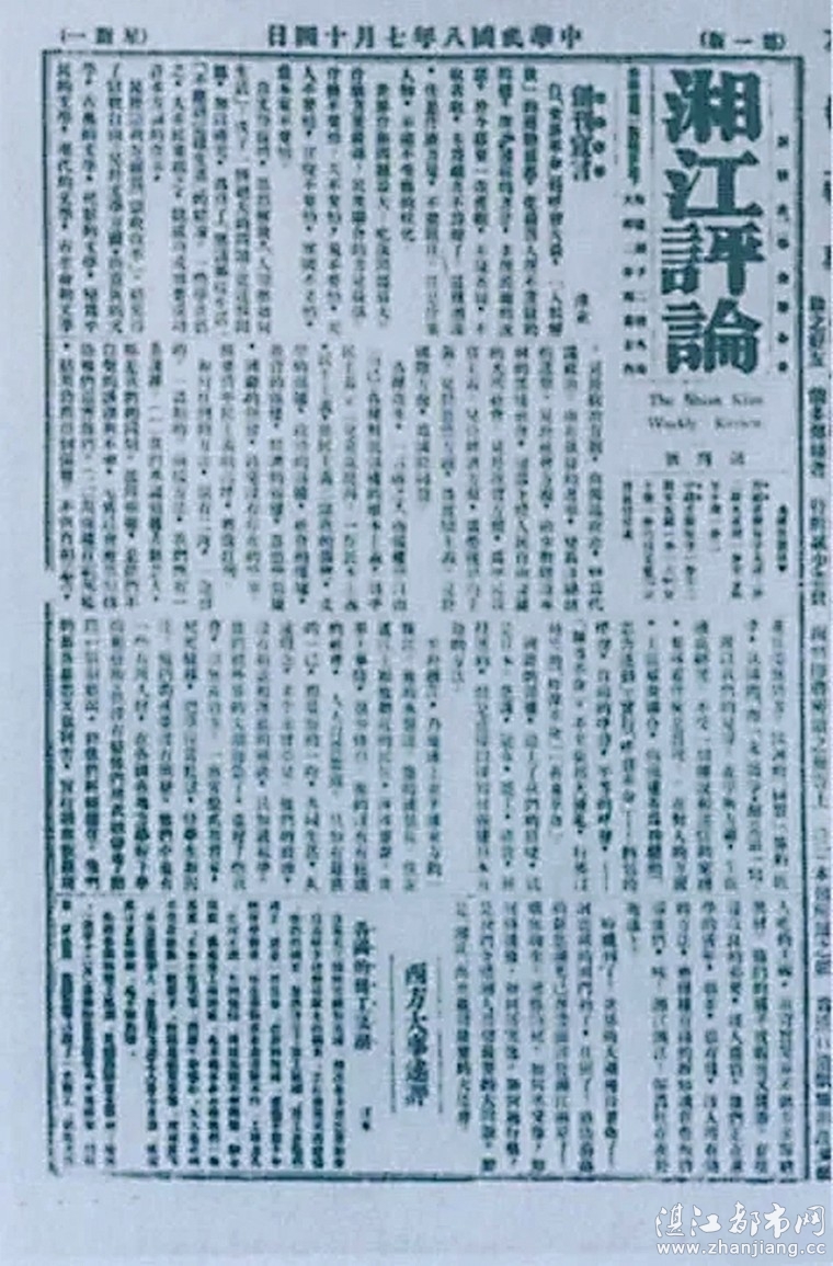 1919年7月14日出版的《湘江评论》创刊号。